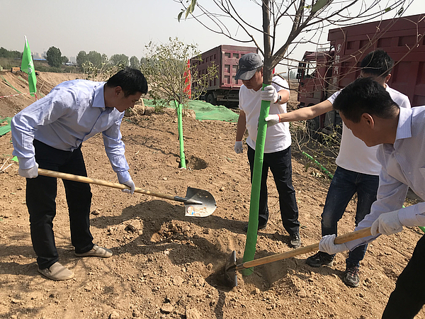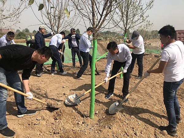 植樹過程中,全體(ti) 員工們(men) 揮鋤鏟土,熱情高昂,挖坑扶苗,熱鬧非凡,充分發揚了團結、互助、友愛的精神。本次活動不僅(jin) 使大家為(wei) 增綠減霾貢獻自己的一份力量,還增強了團隊協作能力。
