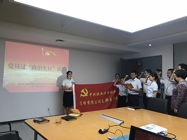 6月20日,物業(ye) 公司黨(dang) 支部組織召開全體(ti) 黨(dang) 員大會(hui) ,對申請入黨(dang) 的7名同誌進行了入黨(dang) 積極分子推薦,並開展了6月份黨(dang) 員過“政治生日”活動,物業(ye) 公司黨(dang) 支部全體(ti) 黨(dang) 員參加會(hui) 議。