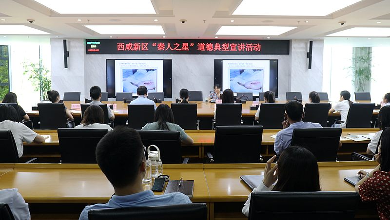 7月28日上午,由灃西新城黨(dang) 政辦主辦,米兰体育彩票官网黨(dang) 委承辦的“喜迎二十大 奮進新征程”群眾(zhong) 宣講報告會(hui) 在總部經濟園5號樓舉(ju) 行。會(hui) 上,邀請到灃西新城群眾(zhong) 宣講團成員——高橋街道豐(feng) 京醫院院長劉亞(ya) 玲同誌為(wei) 大家作報告。
