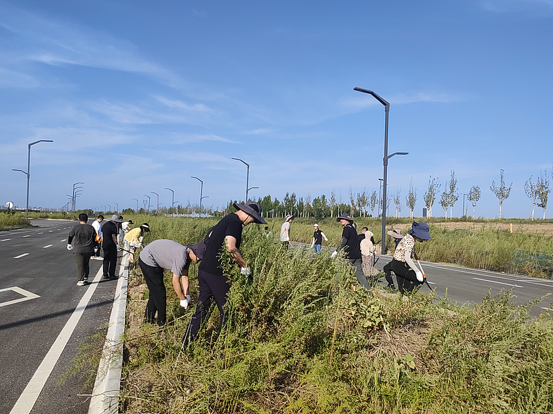 在活動現場,專(zhuan) 業(ye) 人員詳細講解了工具的使用注意事項。隨後,眾(zhong) 人手持各式各樣的除草工具,積極投入到行動中。他們(men) 不僅(jin) 鏟除了道路沿線的雜草,還及時清理了周圍的煙頭、塑料袋以及掉落的樹枝等雜物。大家充分發揮不怕苦、不怕髒、不怕累的鐵軍(jun) 精神,有的徒手拔除雜草,有的用鐮刀精心收割,有的負責清運雜草。眾(zhong) 人分工明確,密切配合,整個(ge) 過程井然有序。忙碌的身影交織在一起,構成了一道格外靚麗(li) 的風景線。