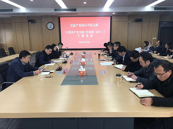 11月28日下午,投資公司黨(dang) 支部組織召開專(zhuan) 題學習(xi) 會(hui) 。專(zhuan) 題學習(xi) 《中國共產(chan) 黨(dang) 支部工作條例(試行)》全文,並傳(chuan) 達了組織部《關(guan) 於(yu) 貫徹落實《條例》的通知》文件精神。