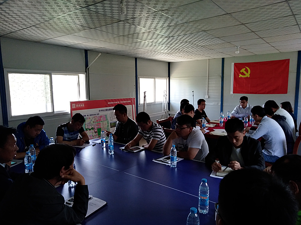 5月17日,房建工程項目管理部支部組織在灃潤和園中建七局項目部開展2018年全國人大、政協兩(liang) 會(hui) 宣講主題黨(dang) 日活動,房建項目部全體(ti) 黨(dang) 員、積極分子及施工單位黨(dang) 員參加會(hui) 議。