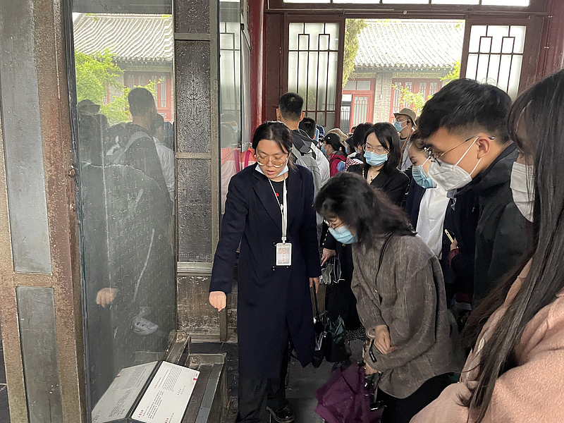 沿著廉政文化學習(xi) 路線,全體(ti) 人員參觀了館藏36字官箴碑、《石台孝經》《戒石銘》數十方與(yu) 廉政文化相關(guan) 的古代碑刻。在碑刻前,大家駐足凝視,仔細尋味,深刻領略 “修其心,治其身,而後可以為(wei) 政天下”“吏不畏吾嚴(yan) ,而畏吾廉。民不服吾能,而服吾公”等廉政思想精髓。