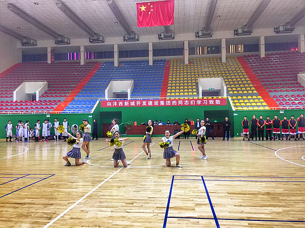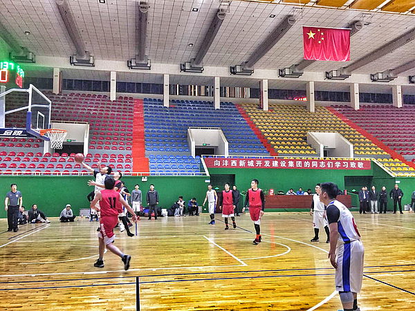 賽場上,雙方隊員個(ge) 個(ge) 激情滿懷、鬥誌高昂,不時展示轉身、胯下運球等嫻熟技術,贏得觀眾(zhong) 們(men) 陣陣掌聲。賽場下,置業(ye) 公司組成的啦啦隊員紛紛呐喊助威,氣氛熱烈。在一個(ge) 多小時的切磋交流中,兩(liang) 隊比分你追我趕、比分交替上升,最終整場比賽在緊張激烈的氣氛中落下帷幕。