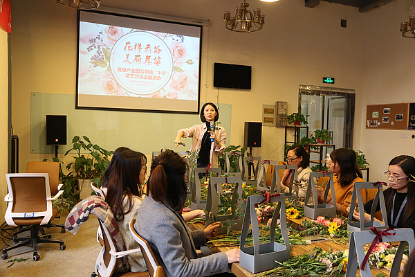 為(wei) 慶祝“三八”國際勞動婦女節,進一步豐(feng) 富女職工的精神生活,陶冶性情、提高藝術修養(yang) ,3月8日上午,信息產(chan) 業(ye) 園公司組織全體(ti) 女職工開展了以“花樣雲(yun) 穀、美麗(li) 年華”為(wei) 主題的“慶3·8”花藝沙龍主題活動。