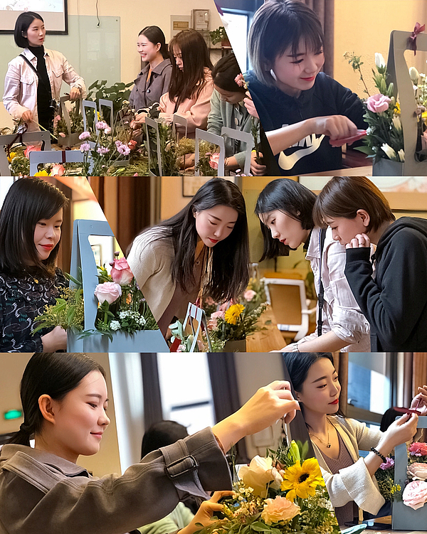 活動現場,專(zhuan) 業(ye) 插花老師為(wei) 大家講解了花藝知識及插花技巧,並展示了幾種經典的插花造型。大家在老師的指導下,充分發揮想象力和創作力,根據每個(ge) 人對“美”的不同理解,創作出獨具風格的花藝作品。