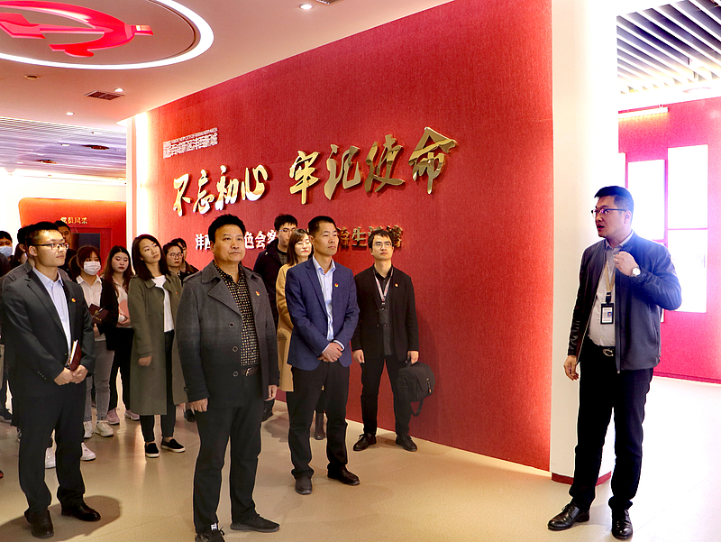 實地考察從(cong) 參觀西部雲(yun) 穀“紅色會(hui) 客廳”開始,團員青年參觀了黨(dang) 史教育區、成果展示區等四個(ge) 主題板塊以及青年之家等特色活動分區,使團員青年身臨(lin) 其境感悟革命精神、厚植革命情感。隨後參觀米兰体育彩票官网黨(dang) 團活動室,交流團建陣地建設。