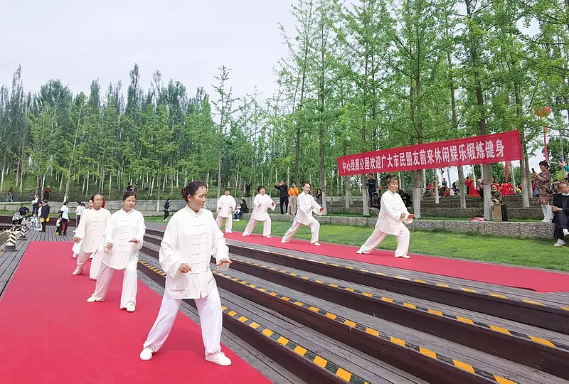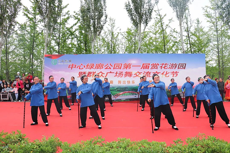 園內(nei) 枝頭梢末,花兒(er) 們(men) 正鉚足勁兒(er) 爭(zheng) 相吐豔,在交流表演現場,廣場舞、太極拳、舞龍隊的精彩表演引得陣陣喝彩和熱烈掌聲。