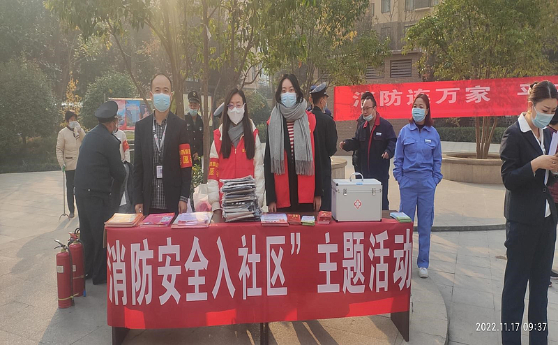 2022年11月是第三十一個(ge) 全國消防宣傳(chuan) 月,為(wei) 充分發揮青年團員投身消防安全工作的引領示範作用,引導廣大人民群眾(zhong) 樹立良好的消防安全意識,進一步營造消防安全知識的宣傳(chuan) 氛圍,夯實消防安全主體(ti) 責任,企業(ye) 管理部按部門“青”字號品牌創建方案,以安全消防月為(wei) 契機,於(yu) 11月17日上午走進灃潤和園社區,組織開展主題團日活動,企業(ye) 管理部團小組全體(ti) 團員參加。