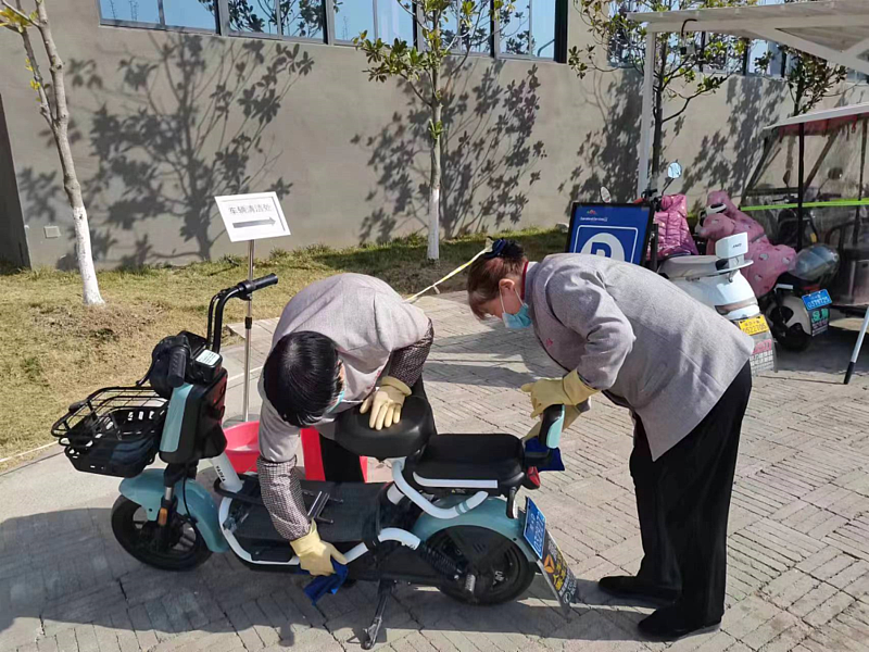 3月3日-3月5日,信息產(chan) 業(ye) 園公司在西部雲(yun) 穀園區開展“弘揚雷鋒精神,構建和諧園區”學雷鋒活動。雲(yun) 穀物業(ye) 服務中心工作人員為(wei) 入園企業(ye) 清洗地毯、清潔入戶門、入室保潔、維修清洗電瓶車,並宣介消防安全知識,得到園區群眾(zhong) 的一致好評。