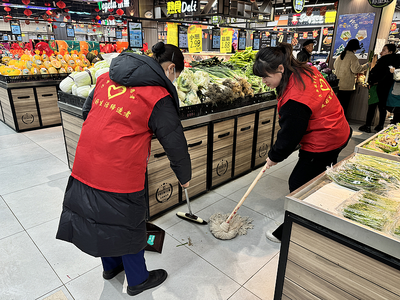 學雷鋒做公益,助推招商引資。青年誌願者們(men) 走進商鋪,助力全員招商,來到合作密切的宏聚客超市、大秦果果商鋪,做一些清潔衛生、陳列產(chan) 品等力所能及的事,為(wei) 商鋪運營增添一份力量,積極營造良好的營商環境。