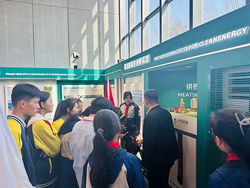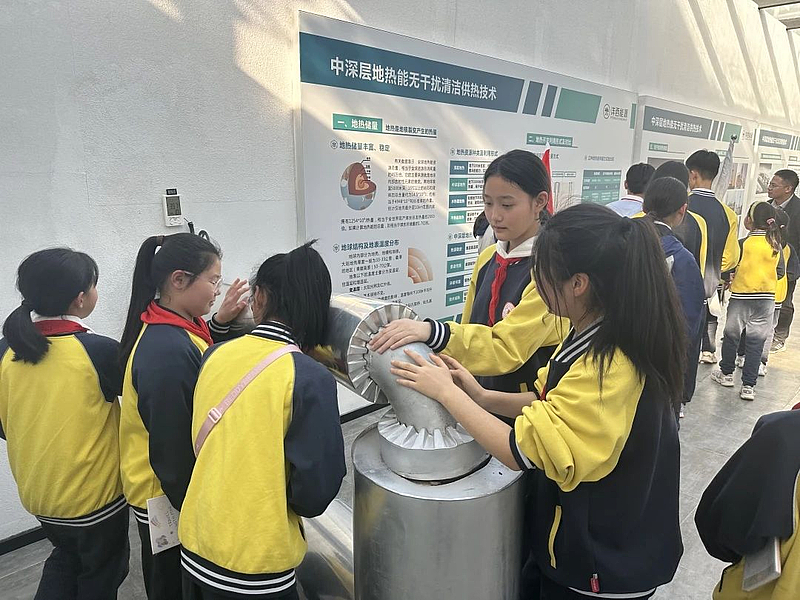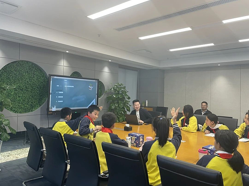 活動當天,灃西新城第四學校師生們(men) 前往“西鹹新區青少年教育基地”——灃西新城總部經濟園綜合能源供應站進行參觀。在專(zhuan) 業(ye) 的講解員帶領下,深入了解中深層地熱能無幹擾清潔供熱技術特點、原理及優(you) 勢。此外,講解員還結合實例,介紹清潔能源在保障城市運行、推動社會(hui) 發展方麵發揮的重要作用。為(wei) 了讓同學們(men) 更加深入地了解中深層地熱能無幹擾清潔供熱技術原理,還特別設置了互動問答環節,互動題目涵蓋了全球氣候變化、能源消費結構、地熱能利用方式及重點政策解讀等多個(ge) 方麵。同學們(men) 興(xing) 趣高昂,踴躍參與(yu) ,紛紛舉(ju) 手競答,活動現場氣氛熱烈。