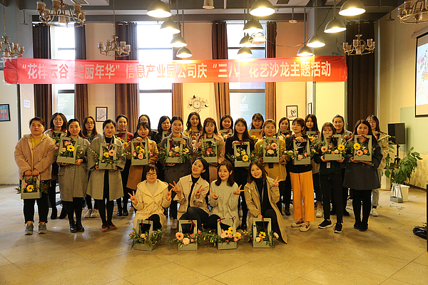 為(wei) 慶祝“三八”國際勞動婦女節,進一步豐(feng) 富女職工的精神生活,陶冶性情、提高藝術修養(yang) ,3月8日上午,信息產(chan) 業(ye) 園公司組織全體(ti) 女職工開展了以“花樣雲(yun) 穀、美麗(li) 年華”為(wei) 主題的“慶3·8”花藝沙龍主題活動。