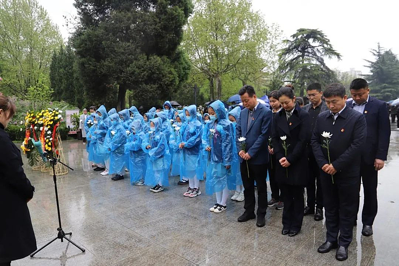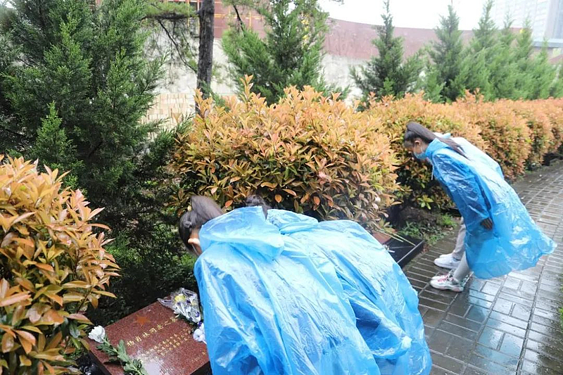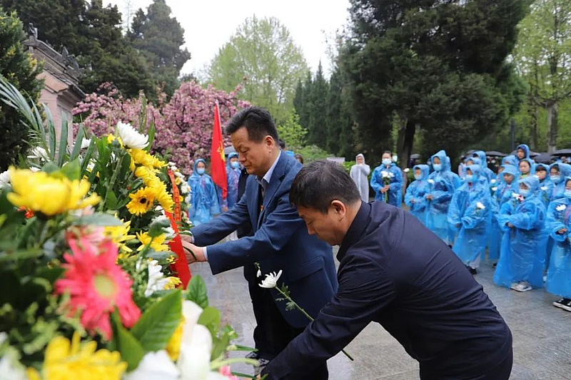 在革命烈士紀念碑前,團員、少先隊員代表手抬花籃緩步走向革命烈士紀念碑,向革命先烈敬獻花籃,投資公司和學校黨(dang) 員代表整理挽聯。在一座座英雄墓碑前,全體(ti) 人員向英雄烈士鞠躬默哀,並將胸前的小白花獻給英烈,表達對先烈的哀思和敬仰。