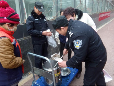 雲(yun) 尚餐廳服務人員為(wei) 除雪人員送薑湯