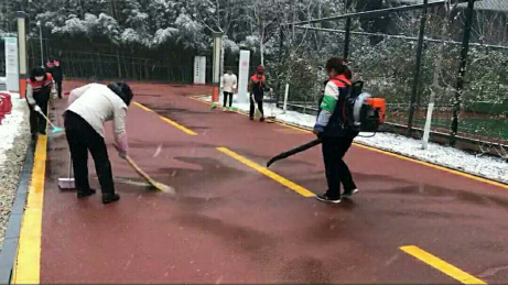 組織專(zhuan) 人清理園區主幹道積雪