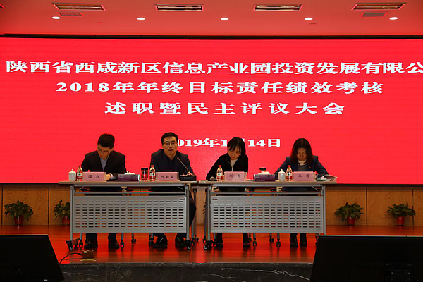 1月14日,信息產(chan) 業(ye) 園公司組織召開2018年年終目標責任績效考核述職暨民主評議大會(hui) 。