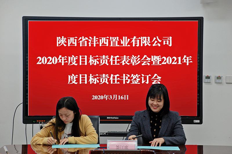 會(hui) 議宣讀了《陝西省灃西置業(ye) 有限公司關(guan) 於(yu) 表彰2020年度先進個(ge) 人及最佳貢獻獎項獲得者的決(jue) 定》,對榮獲先進個(ge) 人及最佳貢獻獎的員工進行表彰。會(hui) 上,公司分管領導與(yu) 各部門負責人簽訂2021年度目標責任書(shu) 及安全生產(chan) 目標責任書(shu) 。