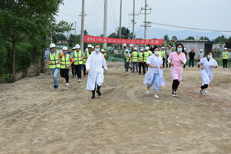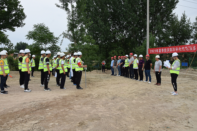 為(wei) 提高全體(ti) 人員對防汛應急工作的認識,檢驗防汛預案及搶險方案的必要性,提高各職能組之間的協調作戰能力,海綿城市技術公司於(yu) 6月安全生產(chan) 月之際,聯合新城農(nong) 業(ye) 農(nong) 村局在新河防洪治理工程項目開展汛期防汛應急演練活動,模擬新河液壓壩部位漲水,即將突破警戒水位值的緊急情況。演練正式啟動後,演練總指揮處接到汛情報告,詳細了解險情各項情況,巡視組立即到達現場進行巡視並報告險情,各組前往指揮部受領任務並開展搶險救災。演練中,各小組在現場指揮下統一行動,搶險有序,及時有效控製潛在危險源。