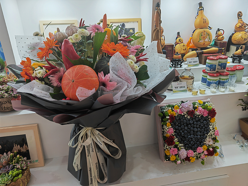 蔬菜禮盒,藍莓花盒——“原來蔬菜花束可以這麽(me) 美啊”。鮮花圍繞包裹著蔬菜、藍莓,不但時尚好看,而且還實用,賞完造型還能吃,滿滿都是心意。