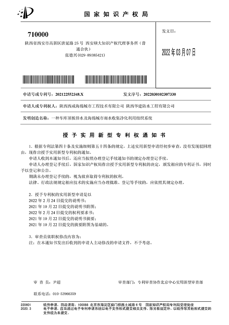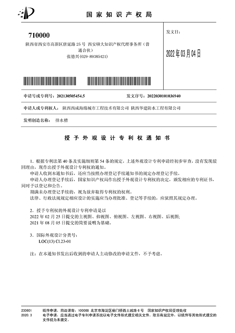 積極探索海綿城市領域新技術、新工藝、新產(chan) 品,加快產(chan) 業(ye) 化推廣步伐,以技術創新推動產(chan) 業(ye) 發展。近日,米兰体育彩票官网海綿城市技術公司一舉(ju) 斬獲“排水槽外觀專(zhuan) 利”和“一種車庫頂板排水及海綿城市雨水淨化利用係統”兩(liang) 項專(zhuan) 利授權,並在轄區項目實現示範應用。