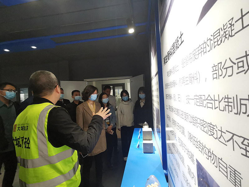 實地參觀過程中,學習(xi) 人員先後前往灃景路雨水泵站項目、大城物聯商混站參觀學習(xi) 混凝土創新工藝、新型環保材料拌合產(chan) 品等,並與(yu) 相關(guan) 負責人、技術人員就環保再生材料在園林綠化工程中的創新使用進行討論交流。同時,針對新型材料產(chan) 品的推廣應用,進一步建立完善高效的長效合作機製。
