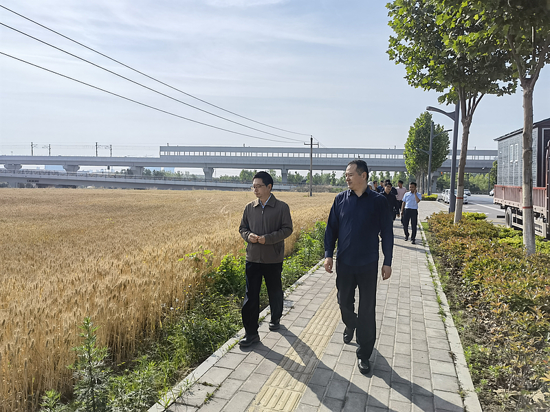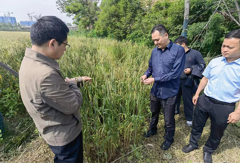 王朝暉一行先後深入王道村麥田,綠浪農(nong) 業(ye) 公社一期、二期麥田,實地查看了小麥長勢、株型、密度等生長情況,並就種植管理提出指導意見。隨後雙方圍繞作物種植及現代農(nong) 業(ye) 發展方向進行交流座談。王朝暉對綠浪農(nong) 業(ye) 公司的新品種小麥種植給予了充分肯定,他表示,綠浪農(nong) 業(ye) 所引進的西農(nong) 223和血麥兩(liang) 個(ge) 新品種小麥成穗率高、穗率數多,在抗旱和抗貧瘠方麵取得了良好效果。西農(nong) 作為(wei) 高等農(nong) 業(ye) 院校,在維護國家糧食安全問題上和國企有著共同的社會(hui) 責任,希望能與(yu) 綠浪農(nong) 業(ye) 深化交流,在種子選擇、土壤改良、高標準農(nong) 田建設等領域共同探索,加強新型農(nong) 作物培育、農(nong) 產(chan) 品畝(mu) 產(chan) 量提升、農(nong) 科成果轉化和富硒作物研發等方麵合作,共同助力農(nong) 業(ye) 發展。
