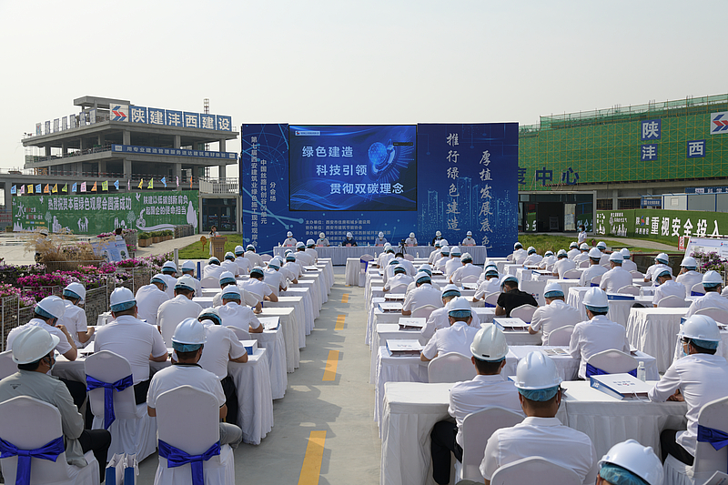 5月21日上午,第七屆西安建築業(ye) 綠色施工示範工程現場觀摩會(hui) 在秦創原生態科創島09單元項目成功舉(ju) 辦。