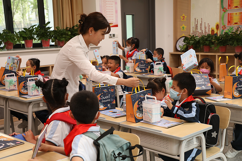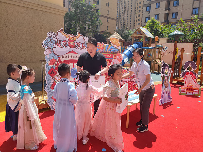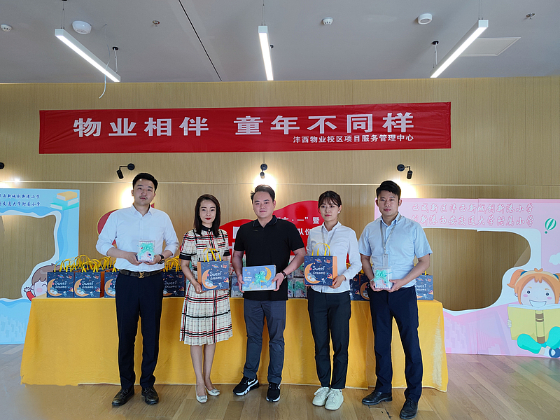 6月1日當天,物業(ye) 公司校區項目已做好萬(wan) 全準備。隨著音樂(le) 響起,西鹹新區灃西新城創新港小學的學生們(men) 開始節目表演了,有國風合唱、《祖國有我》視頻觀看等,互動小遊戲也花樣百出,灃西物業(ye) 校區項目還給大家送上馬克筆、寫(xie) 生本和文具套裝,學生們(men) 都高興(xing) 地說:“都是我們(men) 喜歡的!”