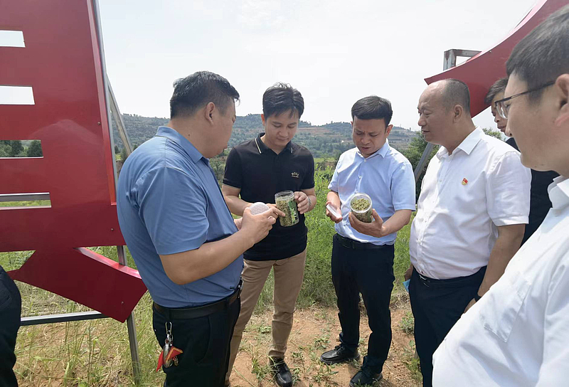 考察團一行先後前往板橋鎮火炬村金銀花產(chan) 業(ye) 示範園、鋼鐵村酸棗種植區、勝利村中藥材種植區、薛峰村連翹種植基地等地實地考察板橋鎮中藥材種植情況,並現場給予技術指導,提出種植優(you) 化意見。隨後,雙方圍繞中藥材產(chan) 業(ye) 發展、中藥材種植基地打造、品牌化建設、產(chan) 品附加值提升、合作方式等進行深入討論交流並達成初步合作意向。
