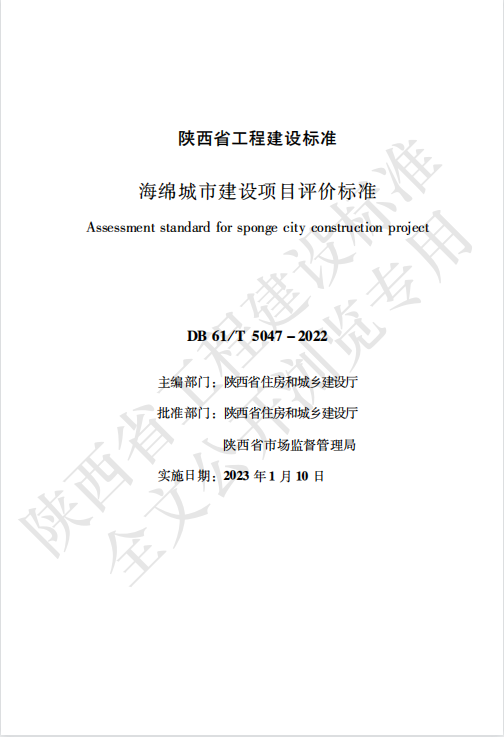 《海綿城市建設項目評價(jia) 標準》(DB61/T 5047-2022)旨在科學引導和規範管理陝西省海綿城市建設項目評價(jia) 工作,以評促建,係統化全域推進海綿城市建設。標準編製遵循因地製宜原則,充分結合陝西省海綿城市建設政策要求、行業(ye) 發展等本土情況,根據項目功能要求及場地特點,提出建築與(yu) 小區、城市道路、綠地與(yu) 廣場、城市水係等項目專(zhuan) 項設計、施工建設、運行維護的評價(jia) 指標體(ti) 係,科學引導各地區、各行業(ye) 加快海綿城市建設。