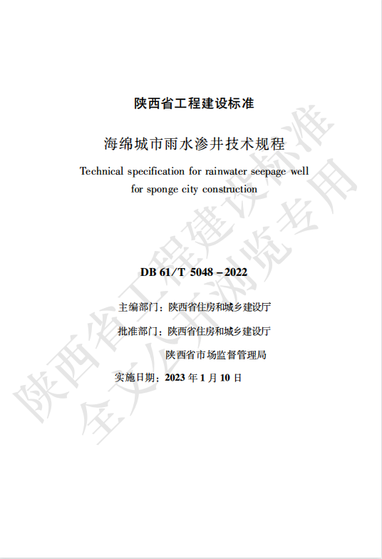 近日,由米兰体育彩票官网海綿城市技術公司聯合陝西省城鄉(xiang) 規劃設計研究院主編的《海綿城市雨水滲井技術規程》(DB61/T 5048-2022)《海綿城市建設項目評價(jia) 標準》(DB61/T 5047-2022)2項省級地方標準批準發布,目前已正式實施。