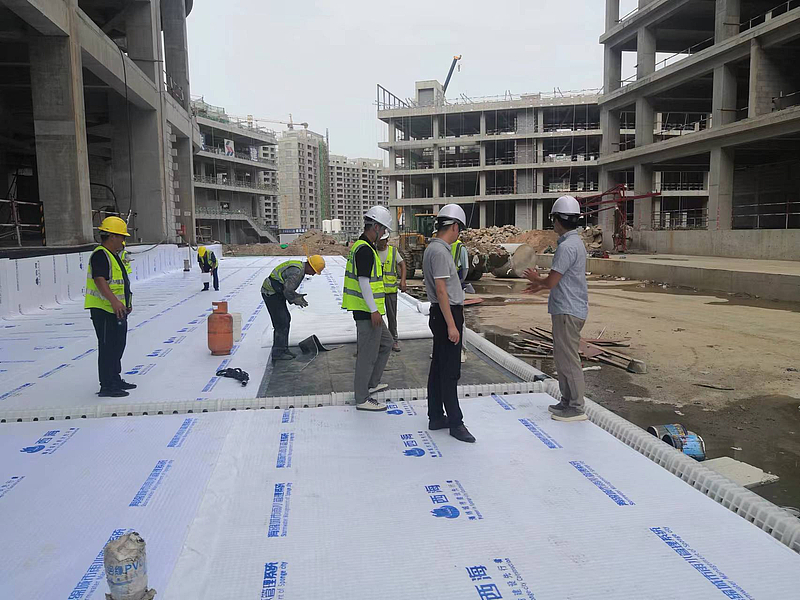 傳(chuan) 統地庫頂板排水技術構造層次複雜,施工不便,且排水效果受找坡層影響較大,同時隨著陸麵地表海綿城市建設的推廣,進一步增加了頂板排水壓力,尤其是大麵積的車庫頂板,因找坡難度大,極易引起排水係統不暢,從(cong) 而造成積水,引發滲漏。