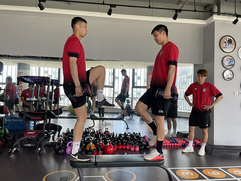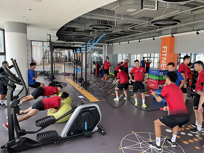 8月29日,在雲(yun) 穀二期健身房中,陝西長安聯合足球俱樂(le) 部的球員們(men) 正在緊鑼密鼓訓練備戰,準備迎接即將到來的2023中冠聯賽總決(jue) 賽。