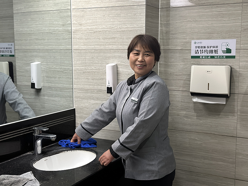 保衛家園潔淨的“衛士”,用腳步踏尋每一個(ge) 角落,用雙手擦拭每一塊瓷磚,用最真摯的熱情,做好最普通的工作。