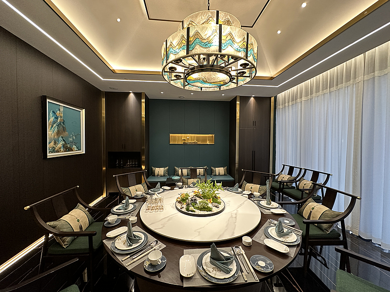 餐廳采用新中式設計風格,以古典文化結合現代時尚,整體(ti) 環境簡約、雅致、有韻味,場景結構和氛圍營造構建出空間體(ti) 驗感,帶給用餐者極致的視覺感受。