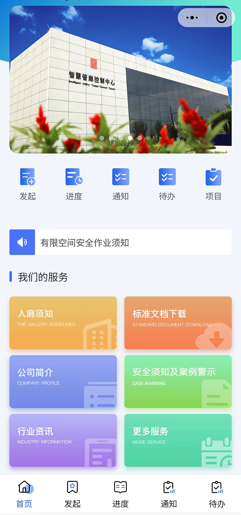 隨著新城經濟快速發展,越來越多企業(ye) 落戶灃西,為(wei) 了向企業(ye) 提供更便利的服務,提高入廊效率,規範有限空間作業(ye) 流程,管廊公司以信息化為(wei) 手段,根據實際需求建立了一套完整的線上業(ye) 務辦理流程,推出“西鹹新區鴻通管廊”入廊小程序。