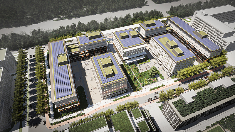 秦創原生態科創島中試廠房內(nei) 部采用平麵大空間柱網,為(wei) 進駐企業(ye) 帶來無限拓展及升級空間;圍護結構采用砂加氣自保溫混凝土砌塊,環保的同時更能提高外立麵耐久性;屋麵布局太陽能光伏板,產(chan) 生的光伏電能可供建築使用,切實踐行綠色低碳節能理念。