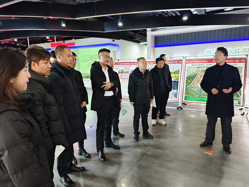 12月22日,西安市禮泉商會(hui) 副會(hui) 長解領權、秘書(shu) 長任冬淩帶領西安市禮泉商會(hui) 投資考察團一行13人參觀調研灃西新城西部雲(yun) 穀。
