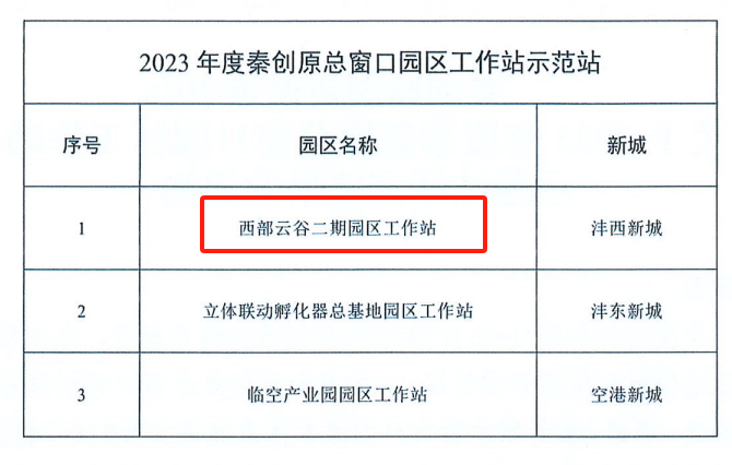 近日,經秦創原創新促進中心組織評選,西部雲(yun) 穀二期園區工作站成功榮獲“2023年度秦創原總窗口園區工作站示範站”稱號。