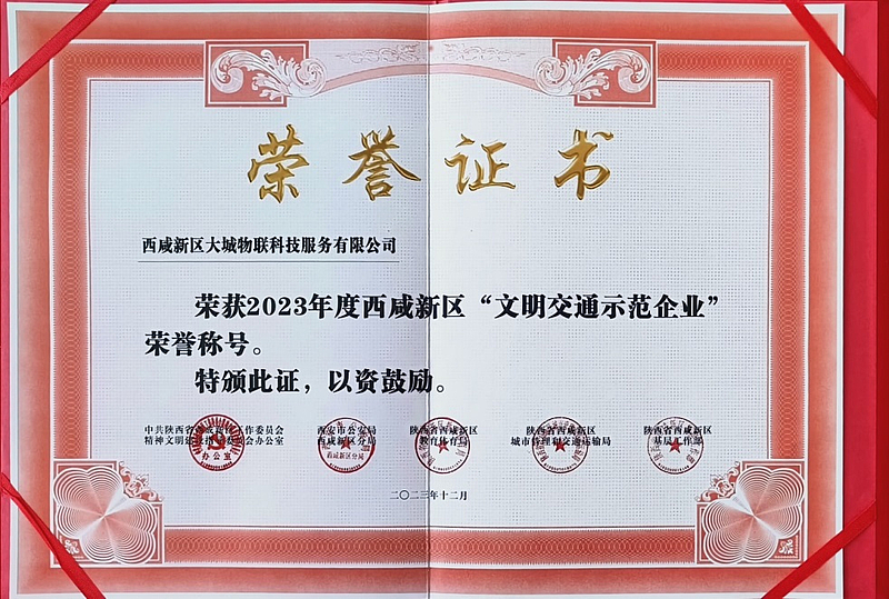 獲評西鹹新區“文明交通示範企業(ye) ”榮譽稱號