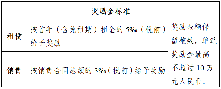 (二)租賃:租賃客戶簽署租賃合同,並付清租賃保證金及首年租金後,一次性兌(dui) 現獎勵金。