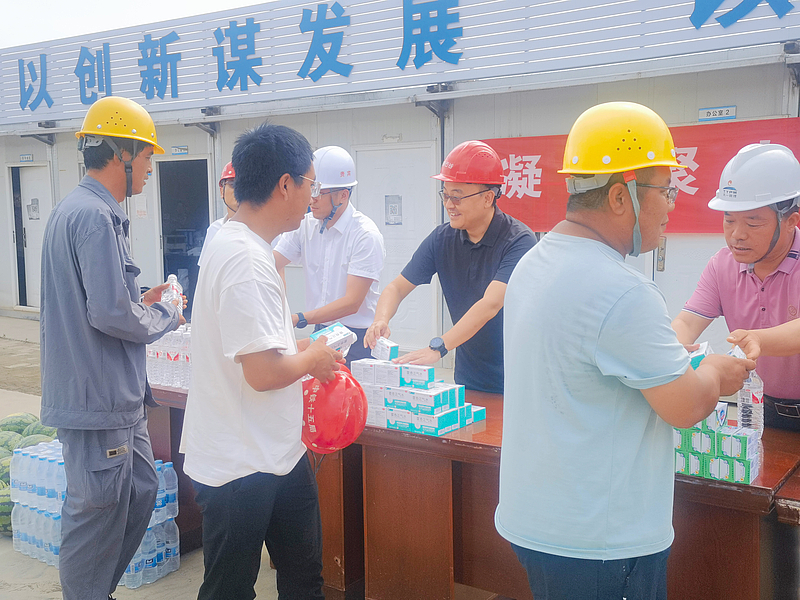 現場工人紛紛表示,一定將園區的關(guan) 懷記在心中,在保證工作質量、工作進度的同時做好高溫天氣作業(ye) 防暑降溫措施,築牢安全、質量“雙防線”。
