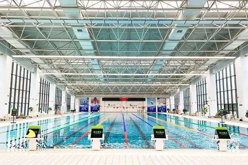 太陽能光伏板建造的頂層、可隔熱隔音的天窗、可隨時開啟的保溫幕牆……8月11日,在西鹹新區灃西新城綠色能源遊泳中心,恒溫恒濕的舒適環境讓更多市民選擇來這裏遊泳健身。