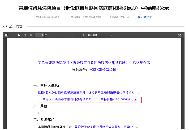 近日,灃西科創子公司灃慧數創成功中標某單位智慧法院(訴訟庭審互聯網法庭信化建設標段)公開招標項目,標誌著灃慧數創在弱電智能化市場項目承接方麵再次取得新突破。
