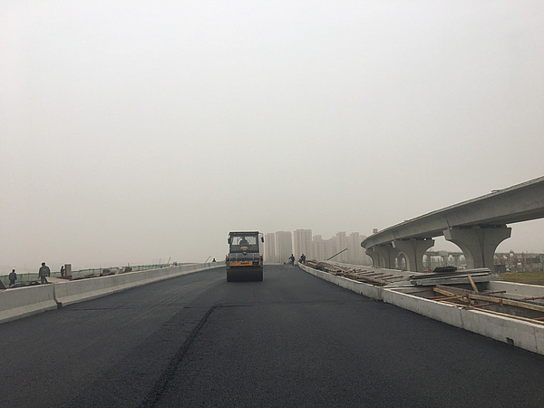 11月30日,在經曆了15天24小時連續搶工作業(ye) 後,天元路(鹹戶路-新港橋)及新港橋兩(liang) 個(ge) 項目先後完成了瀝青路麵鋪設及銜接工作,達到通車條件。