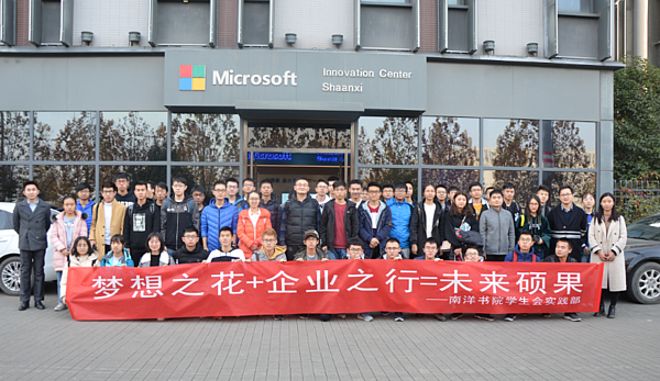 11月28日,西安交通大學南洋書(shu) 院師生一行50餘(yu) 人來訪陝西微軟創新中心(以下簡稱“陝西MIC”)。本次大學生“企業(ye) 行”活動由陝西MIC聯合西安交通大學南洋書(shu) 院共同舉(ju) 辦。本次活動鼓勵大學生走出校園,拓展視野、投身實踐、知行合一,推廣“大眾(zhong) 創業(ye) 、萬(wan) 眾(zhong) 創新”的理念。