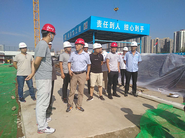 為(wei) 增強施工單位管理人員環保意識,進一步提高建築工地揚塵治理標準,8月13日上午,房建工程項目管理部組織部門項目管理人員及所有參建單位相關(guan) 負責人赴灃東(dong) 新城綠地501項目參觀學習(xi) 。