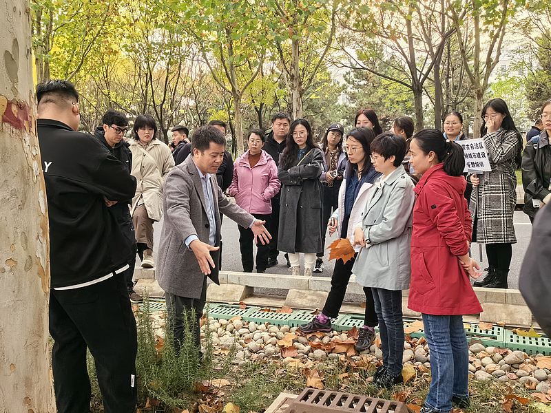 11月9日,內(nei) 蒙古自治區住房和城鄉(xiang) 建設廳城建處領導幹部一行調研灃西新城海綿城市建設,灃西新城開發建設部相關(guan) 負責人參加活動。調研團一行通過講座形式了解了西鹹新區海綿城市建設經驗,隨後到灃西新城海綿城市展廳、中心綠廊、豐(feng) 邑大道等項目,實地參觀了新城海綿城市技術應用、建設成果以及創新城市發展方式典型項目。