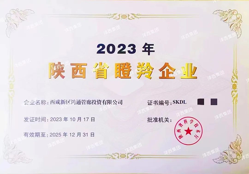 近日,陝西省科學技術廳公布2023年陝西省瞪羚企業(ye) 名單,米兰体育彩票官网投資公司全資子公司—西鹹新區鴻通管廊投資有限公司(以下簡稱“管廊公司”)光榮上榜!